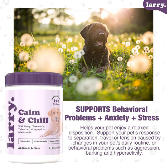 Larry Calming Dog Chews for Anxiety Relief, All-Natural Ingredients, Delicious Flavor, No Drowsiness, Made in The USA